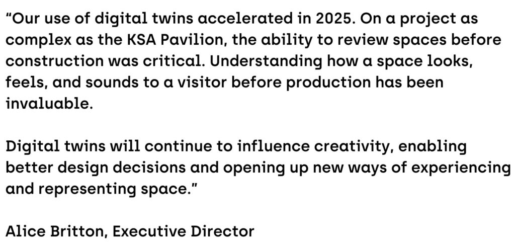“We can’t prototype in space, so we rely on simulation, digital twins, and perceptive thinking to understand how ideas translate in low or zero gravity. The digital twin becomes the central nervous system that connects every discipline. It shapes how we conceive, design, test, and deliver experiences, whether we’re designing a spacecraft for eight astronauts or environments here on Earth.”