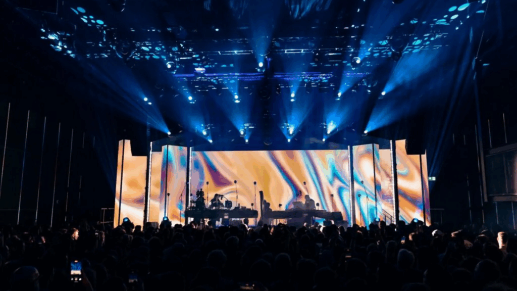 Imagine watching a live DJ set and all of a sudden, the venue doubles in size and there are three times more lights on the stage. That’s what Dimension, a Journey studio, does at HERE at Outernet London, a live experience delivered for DJ duo Röyksopp and Floating Points.