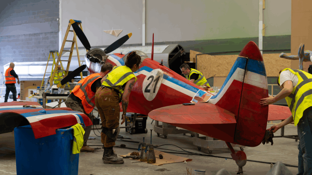 ‘Spitfire’ is one of the standout attractions at Six Flags Qiddiya City. The coaster, manufactured by Intamin, features the world’s tallest inversion. Our team fabricated a full-scale model of the eponymous iconic aircraft that anchors the ground level, giving the attraction a physical presence before riders enter the queue. Work began with a master pattern machined from rigid foam on a five-axis robot, followed by FRP casting and scenic finishing to introduce surface depth and wear. Subtle animatronic elements were added to bring controlled movement into the form.
