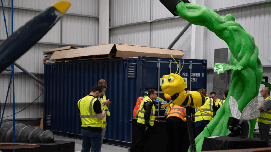 Our team was involved from start to finish. Early design ideas were taken and worked through in detail, so everything could be built, moved, maintained, and operated safely once the park opened. From there, the physical elements were made in-house, including large scenic pieces, structural components, and animated features, all designed to cope with constant outdoor use.