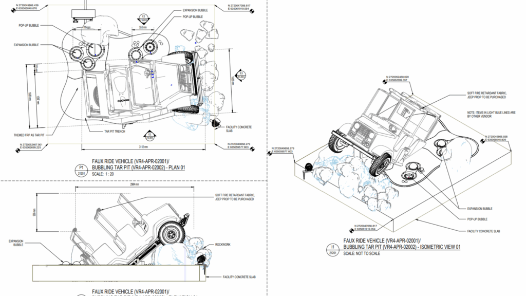 The package extended across multiple themed zones and included large-format centerpieces, and animatronic encounters embedded directly into ride and guest environments. Rather than a single installation, the work demanded consistency of approach across numerous locations, each with its own spatial constraints, interfaces, and operational requirements.