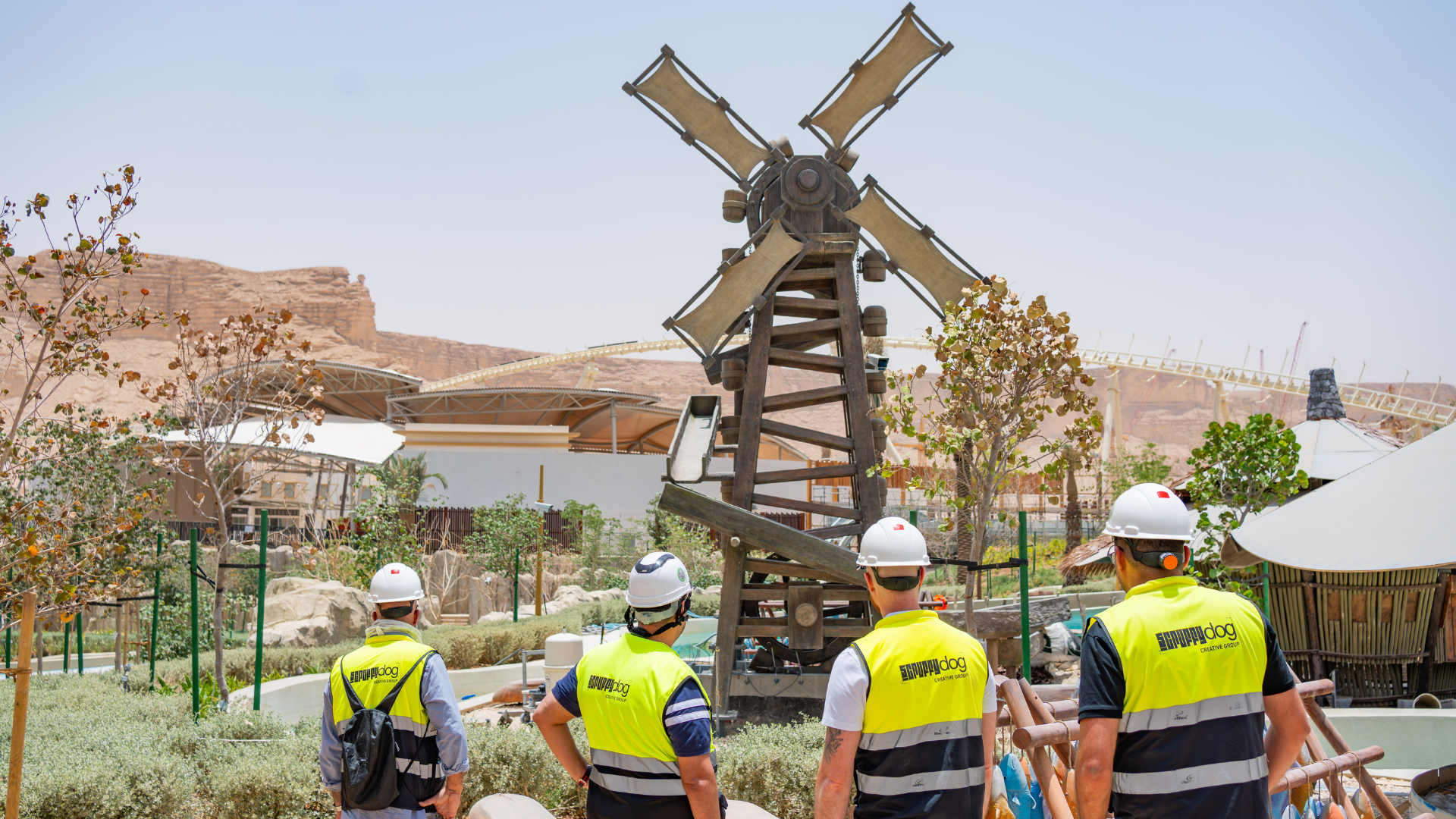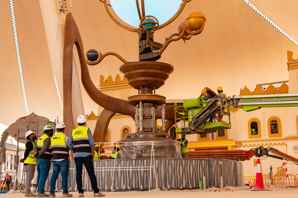 The unique environmental conditions of Qiddiya shaped delivery throughout. Outdoor exposure, dust, wind loading, and extended daily operating hours were central to material selection, structural design, and mechanical specification across the package. The program pressures associated with a live construction site required fabrication and installation strategies that reduced on-site risk while staying faithful to the original creative intent.