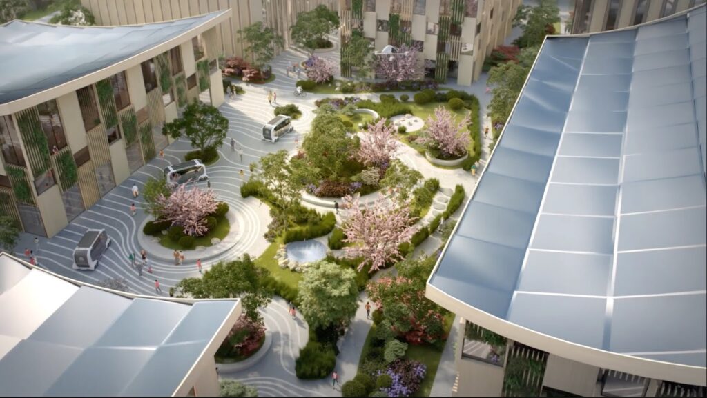 The Woven City is a fully connected ecosystem powered by hydrogen fuel cells to be built at the base of Mt. Fuji in Japan. This “living laboratory” will include full-time residents and researchers who will test and develop technologies such as autonomy, robotics, personal mobility and smart homes, in a real-world environment.