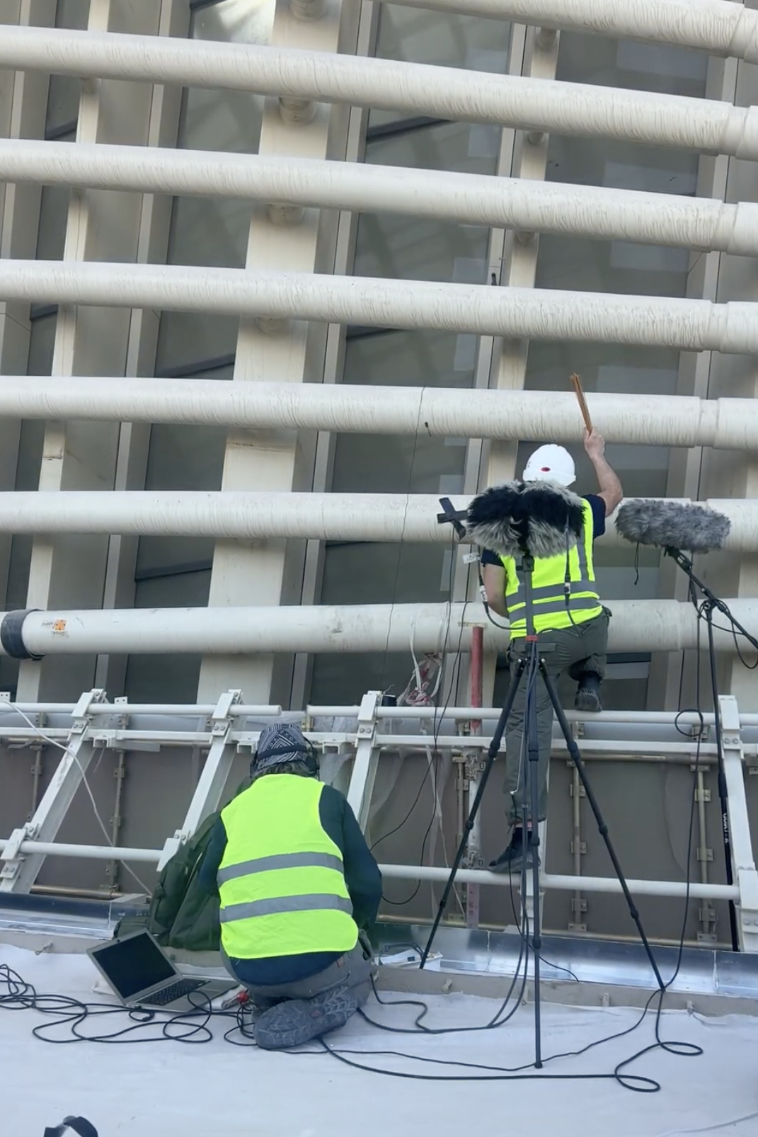 On the museum’s distinctive roof, the sculptural fins have been reimagined as playable instruments, with 130 speakers at the base of fins. Journey developed an audio concept to “play” the fins in collaboration with sound artists Idee Und Klang in Basel. Working with a Swiss percussionist, the building itself was turned into an instrument.